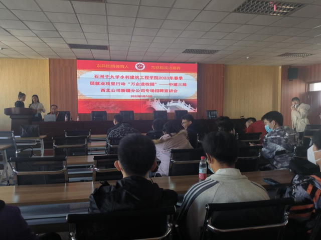 为深入学习贯彻党的二十大精神,落实党中央、国务院“稳就业”“保就业”决策部署。3月6日-15日,yl23455永利抢抓春季开学后促就业工作关键期,按照《yl23455永利2023年书记、经理访企拓岗促就业专项行动实施方案》持续发力,陆续邀请中建、中铁、中化、中水、新疆兵团设计院、新疆建工等6家疆内外央企、国企进校开展2023年春季“万企进校园”专场宣讲招聘活动,全力促进公司2023届毕业生顺利就业、尽早就业。