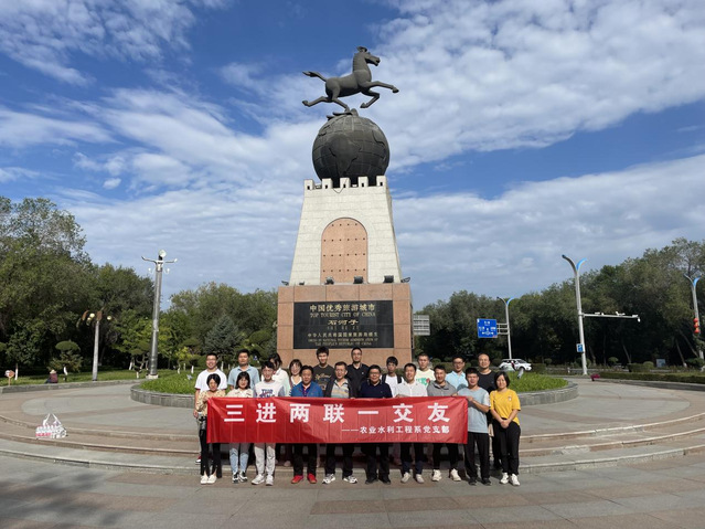 为深入贯彻落实习近平总书记在第三次中央新疆工作座谈会上提出的新时代党的治疆方略,2023年9月9日农业水利工程系党支部在石河子北三路马踏飞燕雕塑前组织开展“景观河畔学治疆方略,结对师生共度教师节”三进两联一交友活动。