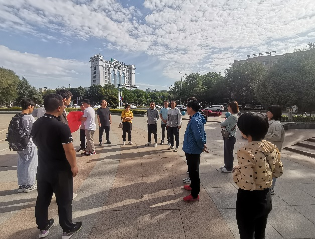 活动伊始,全体教师先与结亲员工一起沿景观河畔徒步5公里并返回出发点。健走过程中教师与各自结亲员工亲切交谈,全面了解员工的生活、学习以及对未来的规划,给他们分享一些建议,并表达了对他们未来发展的殷切期望。返回马踏飞燕雕塑后,系党支部组织师生再次共同学习了第三次中央新疆工作座谈会会议精神,同时开展了“治疆有我”师生知识抢答环节,引起了大家踊跃参与。