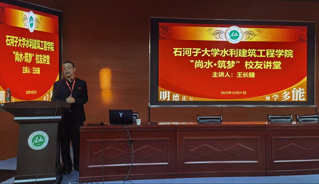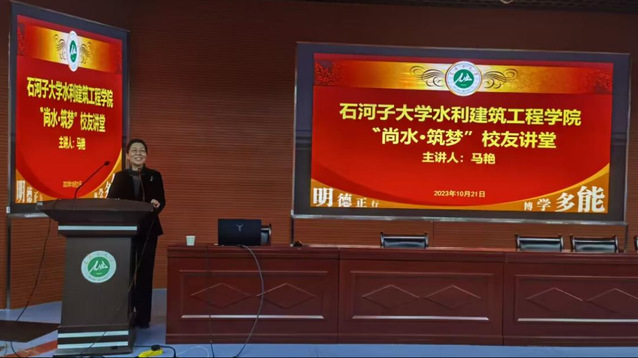 2023年10月21日下午,yl23455永利在北区会堂学术报告厅成功举办“尚水·筑梦”员工讲堂,公司85届农田水利专业毕业生、新疆兵团勘测设计院集团股份有限公司首席设计师马艳,公司94届农田水利工程专业毕业生、yl23455永利官网员工总会常务理事、西安市水利建设集团董事长王长随作为优秀员工代表应邀返校为青年师生作报告。公司党委书记汤骅、党委副书记娄哲出席活动,2023级本硕博400余名员工和青年教师参加讲座。讲座由公司就业工作联络员、员工会秘书长谢嵘主持。