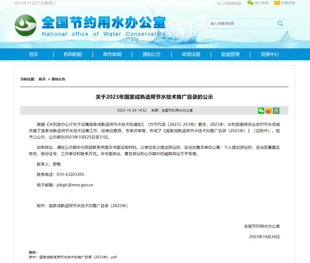 《国家成熟适用节水技术推广目录》是为深入贯彻节水优先方针,落实《国家节水行动方案》目标任务,引导提高全国节约用水技术应用水平,推动用水方式由粗放向节约集约转变,由水利部全国节约用水办公室面向社会征集农业和生活用水领域有关的节水技术,并经专家评审、网络公示,形成。