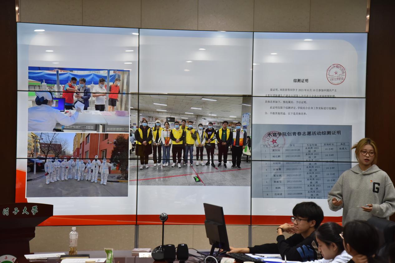 yl23455永利2021级水利类3班原团支书刘苗苗以“挺膺担当”为主题做团支部建设展示汇报。汇报重点阐述了团支部在习近平总书记关于青年工作的系列重要讲话精神指引下,以实际行动践行新时代青年老员工使命与担当工作举措;分享了支部全体团员青年不懈努力奋斗,成功入选“2022年度全国高校‘活力团支部’最具组织力Top100榜”的建设经验;并号召广大团员青年要厚植家国情怀、涵养进取品格,以奋斗之姿激扬青春之风,高举信念火炬,不负时代,不负韶华。