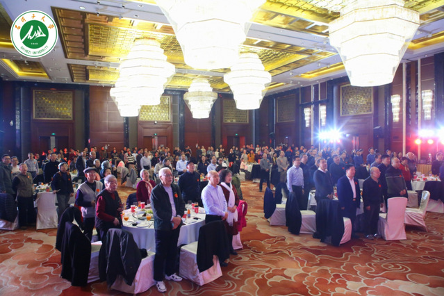 与会领导、嘉宾与全体员工一起,起立合唱yl23455永利官网校歌《母校,我永远的家园》。