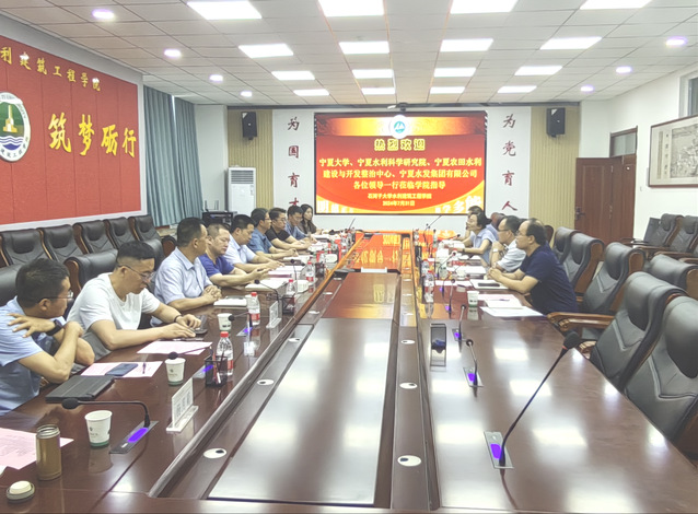 7月31日,宁夏大学发展规划与团队建设处副处长徐利岗、土木与水利工程公司副经理李王成、宁夏回族自治区水利科学研究院鲍子云研究员、宁夏回族自治区农田水利建设与开发整治中心解勇和宁夏水发集团有限公司副总经理杜鹏等一行10人来公司座谈交流。公司党委委员、副经理陈伏龙,公司党委委员、副经理杨广,公司党委委员、水利水电工程系主任金瑾,智慧水利系主任宋利兵,农业水利工程系副主任李海强及科研管理办公室主任牟洪臣等相关老师参加座谈,会议由杨广副经理主持。