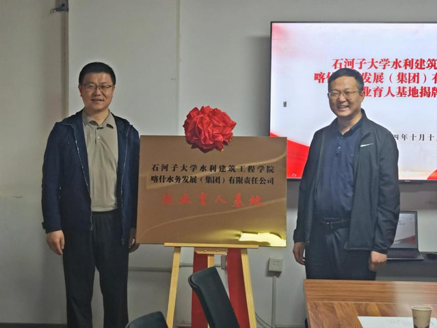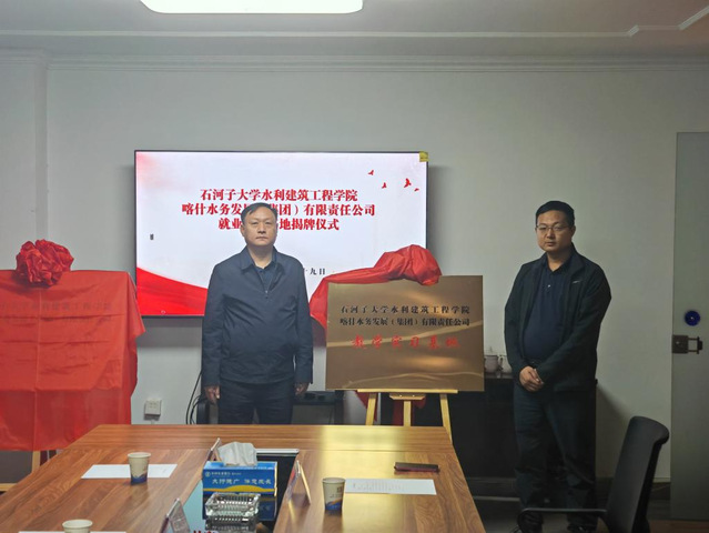 王振华在与喀什水务发展(集团)有限责任公司总经理李建平座谈交流中谈到,“只有走进用人单位并深入现场去开展调查研究,才能真正了解用人单位对毕业生知识、能力、素质的需求,才能真实分析行业发展趋势和人才需求形势,才能为公司持续优化人才培养方案和不断提升行业人才培养质量提供有效参考。”会后,王振华、娄哲分别代表公司为喀什水务发展(集团)有限责任公司授牌“教学实习基地”和“就业育人基地”。