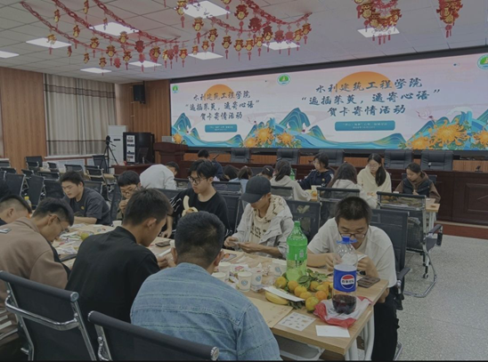 活动当天,公司24级心理委员、满天星使者等诸多同学积极响应、热情参与。活动开始,首先由主持人陈睿思同学讲解重阳节的由来,带领大家重温重阳节对中华民族的重要意义;紧接着开始贺卡制作沙龙,参与同学被分为五个小组,工作人员为每一组分发水果零食、制作材料和绘画工具,活动气氛愈发活泼,大家经过一番构思后纷纷开始,各自描绘花纹、书写诗词。
