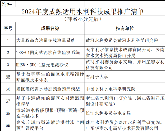 为深入贯彻落实习近平总书记“节水优先、空间均衡、系统治理、两手发力”治水思路和关于治水的重要论述精神,支撑推动新阶段水利高质量发展,切实做好国家成熟适用水利科技成果推广,水利部经需求凝练、成果征集、遴选评审,形成了《2024年度成熟适用水利科技成果推广清单》,公司王振华教授领衔的水利部滴灌节水高效技术研究创新团队暨干旱区滴灌节水兵团科技创新团队完成的《基于数字孪生的灌区水肥精准诊断灌溉技术体系》成果成功入选该清单,成为该团队第4项入选水利部推广成果。