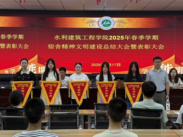 会议表彰了在2025年春季学期宿舍安全卫生中期评比中获得“优秀”的16间宿舍,娄哲为获奖宿舍代表颁发流动红旗和奖品。