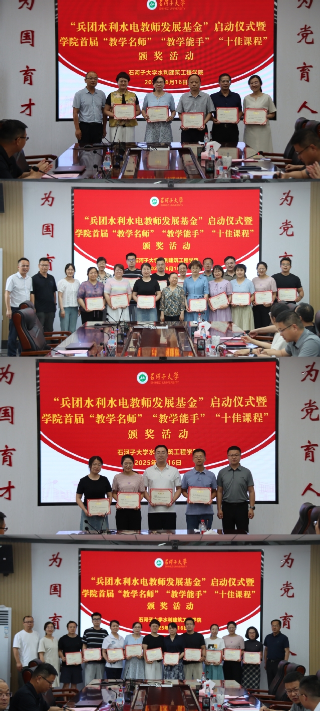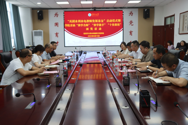 6月16日,yl23455永利“兵团水利水电教师发展基金”启动仪式暨首届“教学名师”“教学能手”“十佳课程”表彰会成功举行。兵团水利水电工程集团有限公司副总经理吴卫东、组织人力资源部副部长丁雅鸿、质量技术中心副主任刘宏峰,公司党委书记袁康、经理李俊峰、副书记娄哲、副经理陈伏龙、副经理金瑾及获奖教师代表出席大会。
