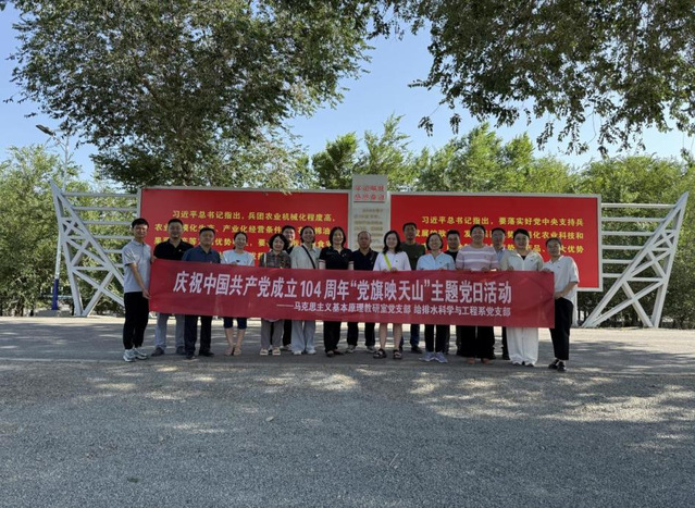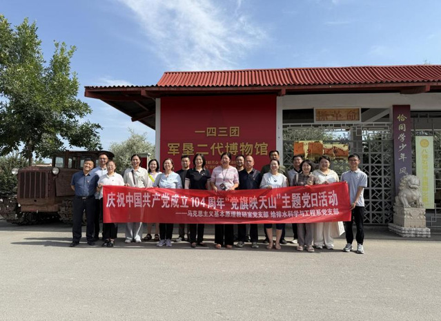 为庆祝中国共产党成立104周年,6月26日上午,马克思主义公司马克思主义基本原理党支部与​yl23455永利给排水科学与工程系党支部联合开展“沿着总书记足迹 感悟思想伟力”——“党旗映天山”主题党日活动,感悟兵团精神,筑牢责任使命。