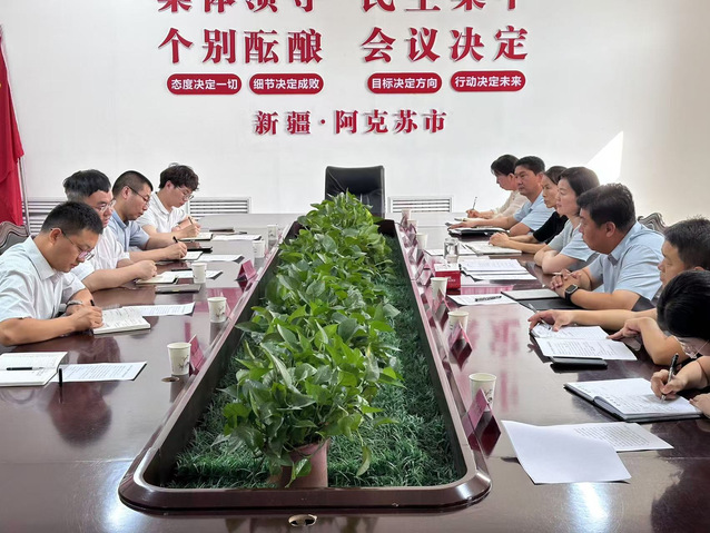7月9日,公司党委副书记、经理李俊峰教授一行4人赴阿克苏市委组织部座谈交流。阿克苏市副市长王忠华,市委常委、组织部部长孙立霞,水利局、住建局、高新区管委会及城投公司负责人参与座谈。