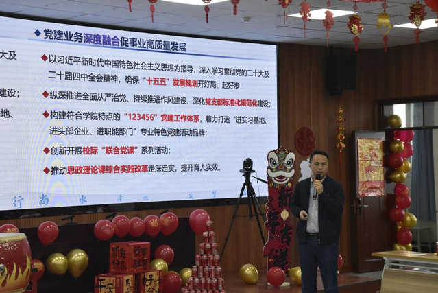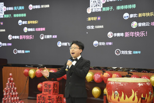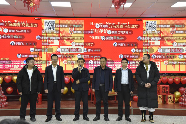 随着各系精彩节目落幕,联欢会渐入尾声。在接续的掌声中,叶董事长压轴登场,以一曲《小白杨》点燃全场。他嗓音浑厚、情感真挚,歌声里满载对教育事业的挚爱与坚守,引得全场师生轻声应和,掌声与欢呼随旋律起伏,将晚会推向最高潮。随后,“2026马年送祝福”环节更添温馨。马年本命年及马姓教师代表应邀上台,为全体师生送上特别的新年祝愿。真挚话语交织着浓浓的新年味道,为整场晚会画上温情句点。
