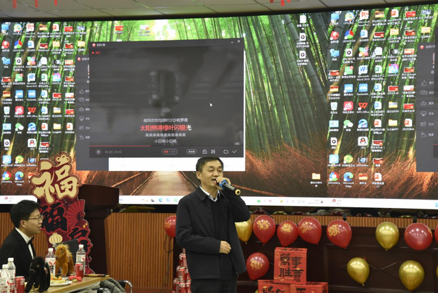 联欢会伊始,李俊峰经理登台,与全体师生一起回顾了公司2025年度“十件大事”。他系统梳理了过去一年公司在党的建设、人才培养、科学研究、团队建设等各方面取得的显著成就与突破性进展,对全体师生的辛勤付出致以诚挚感谢,并对公司新一年的高质量发展寄予了殷切期望。随后,袁康书记围绕2026年工作要点,擘画了公司高质量发展的崭新蓝图,号召全院师生以 “凝心聚力、守正创新” 的姿态,共同谱写公司事业发展新篇章。